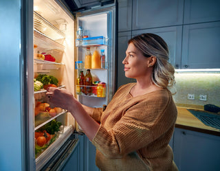 Put these foods on the highest shelves of cabinets, or on the lowest shelves of the refrigerator so they will be less noticeable and harder to reach. Out of sight, out of mind! Keep your healthy foods and snacks stored at eye level so you’re more likely to grab those instead.